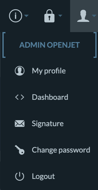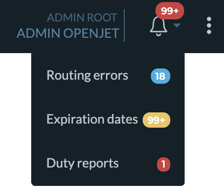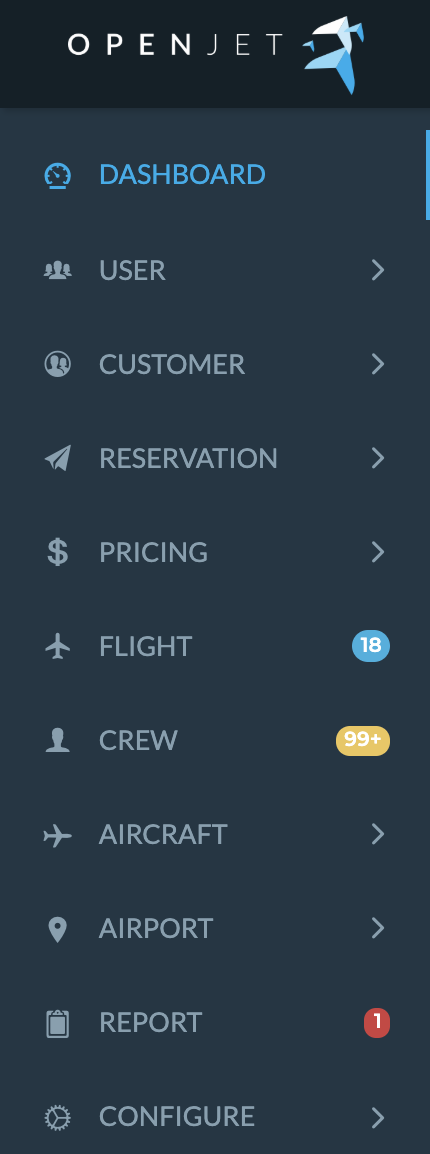 After login, you start on the Dashboard. Your Company admin can display some Widgets on the Dashboard (Aircraft/crew location, Flight hours etc.). Dashboard can be customized upon request by contacting support@openjet.com.
